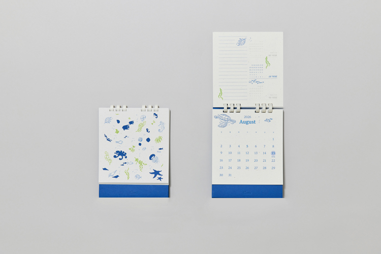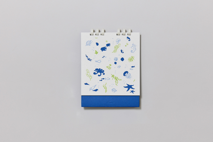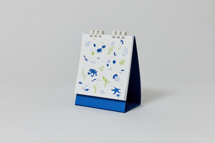 바다풀 탁상형 블루 캘린더는 해양 생물에서 영감을 얻은 일러스트와